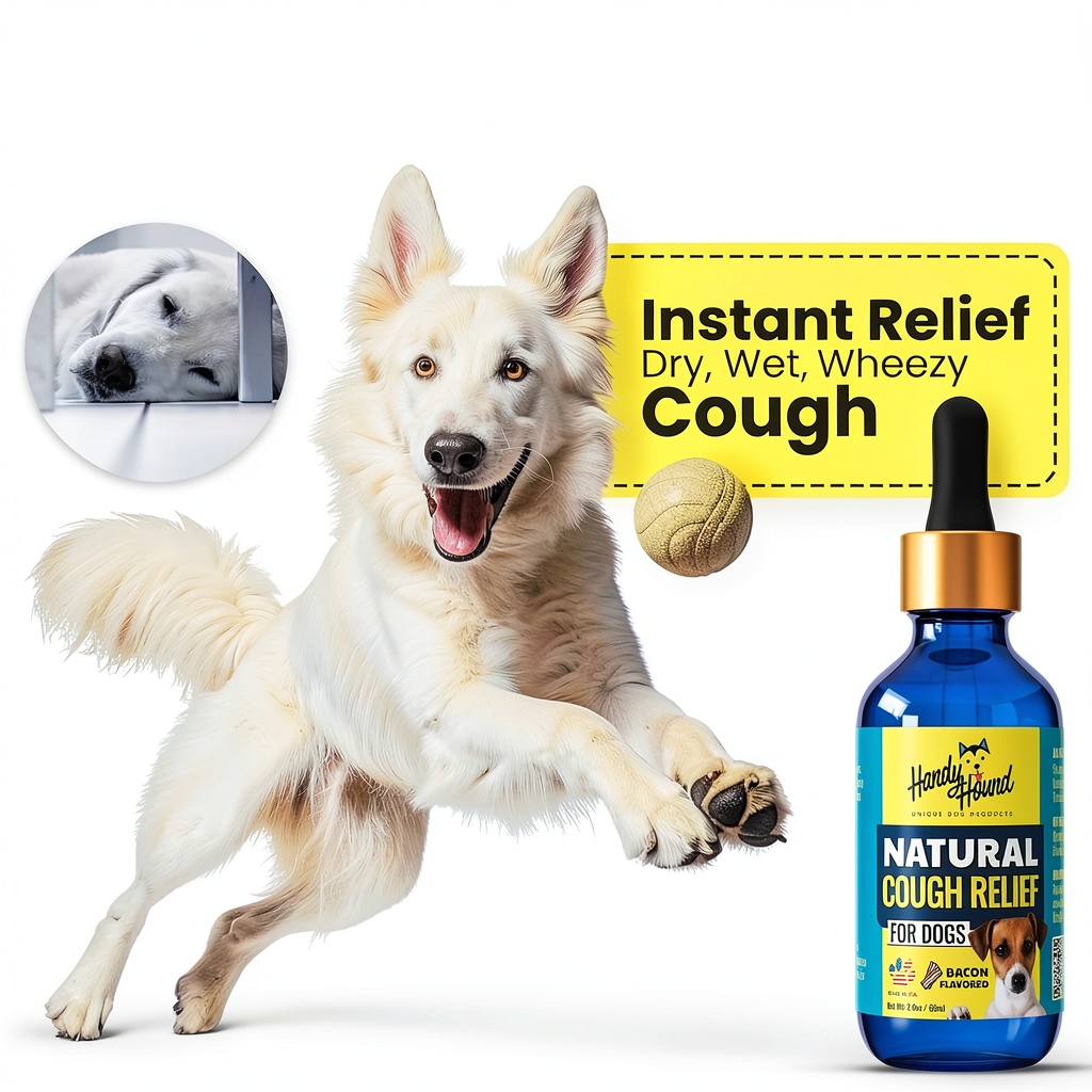 Handy Hound dog cough medicine provides natural relief for persistent coughing and throat irritation. Formulated with Manuka honey, licorice root, and echinacea, it soothes respiratory discomfort and supports immune defense. Easy to administer with a dropper, it’s ideal for dogs with kennel cough or seasonal respiratory issues.